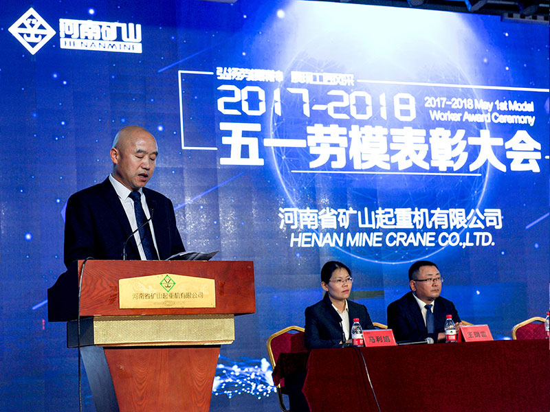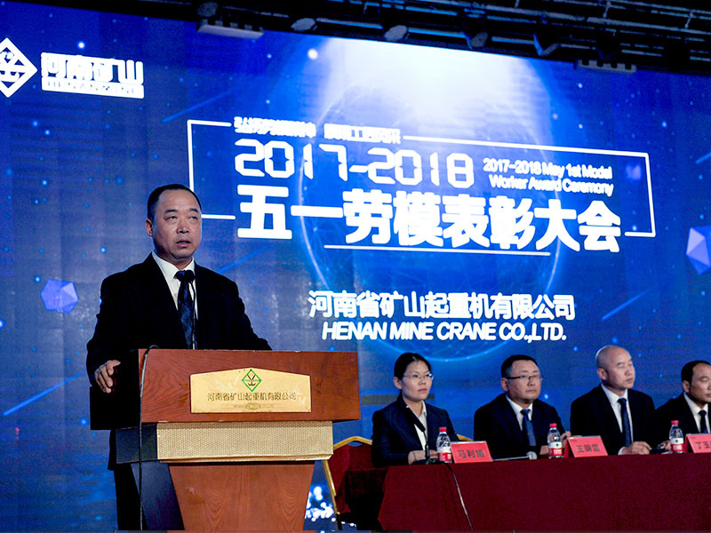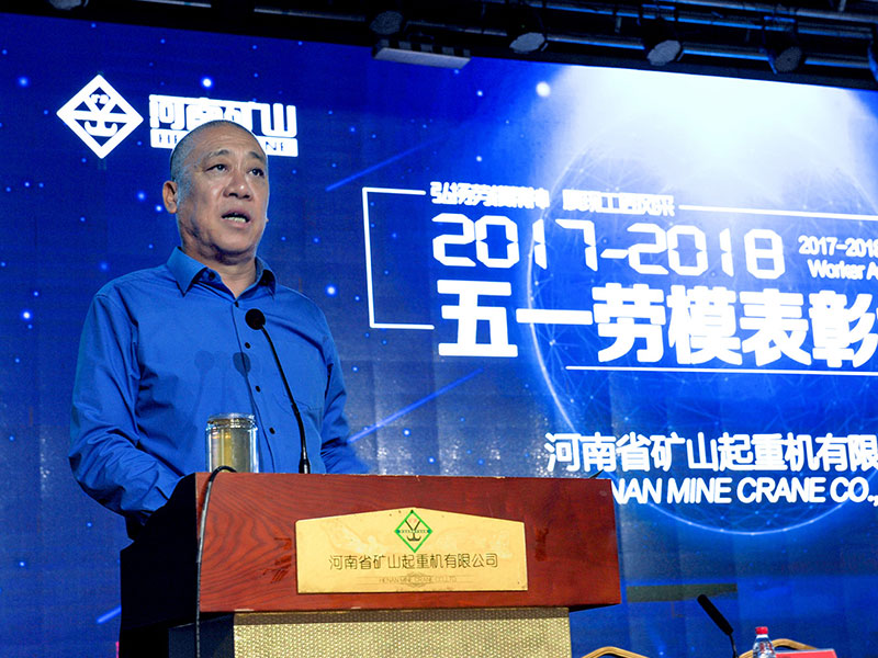 公司創(chuàng)始人、黨委書記崔培軍發(fā)表重要講話。他首先向全體員工致以節(jié)日的問候,向獲獎勞模表示祝賀!感謝大家為公司所做出的努力與貢獻。他就勞模精神、工匠精神、質(zhì)量比武、生產(chǎn)工期、素質(zhì)素養(yǎng)五個方面提出希望和要求。希望在勞模精神的鼓舞下,全體員工要抓緊生產(chǎn),服務客戶。繼續(xù)深化質(zhì)量月活動。立足本職崗位,再創(chuàng)新的佳績。踐行工匠精神,以更高標準嚴格要求自己。團結一心,眾志成城,努力將河南礦山打造成為一個享有盛譽的起重企業(yè)。