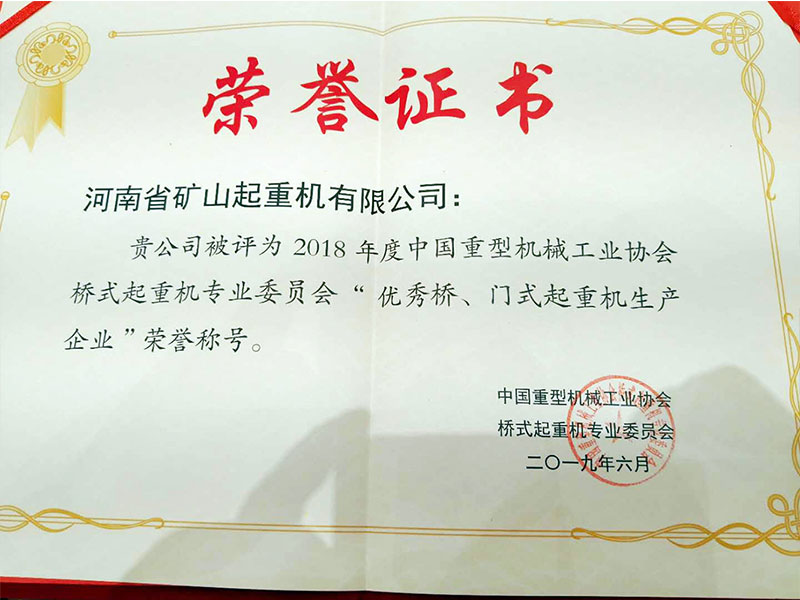 喜訊|河南礦山再次榮獲“門式起重機(jī)生產(chǎn)企業(yè)”榮譽(yù)稱號